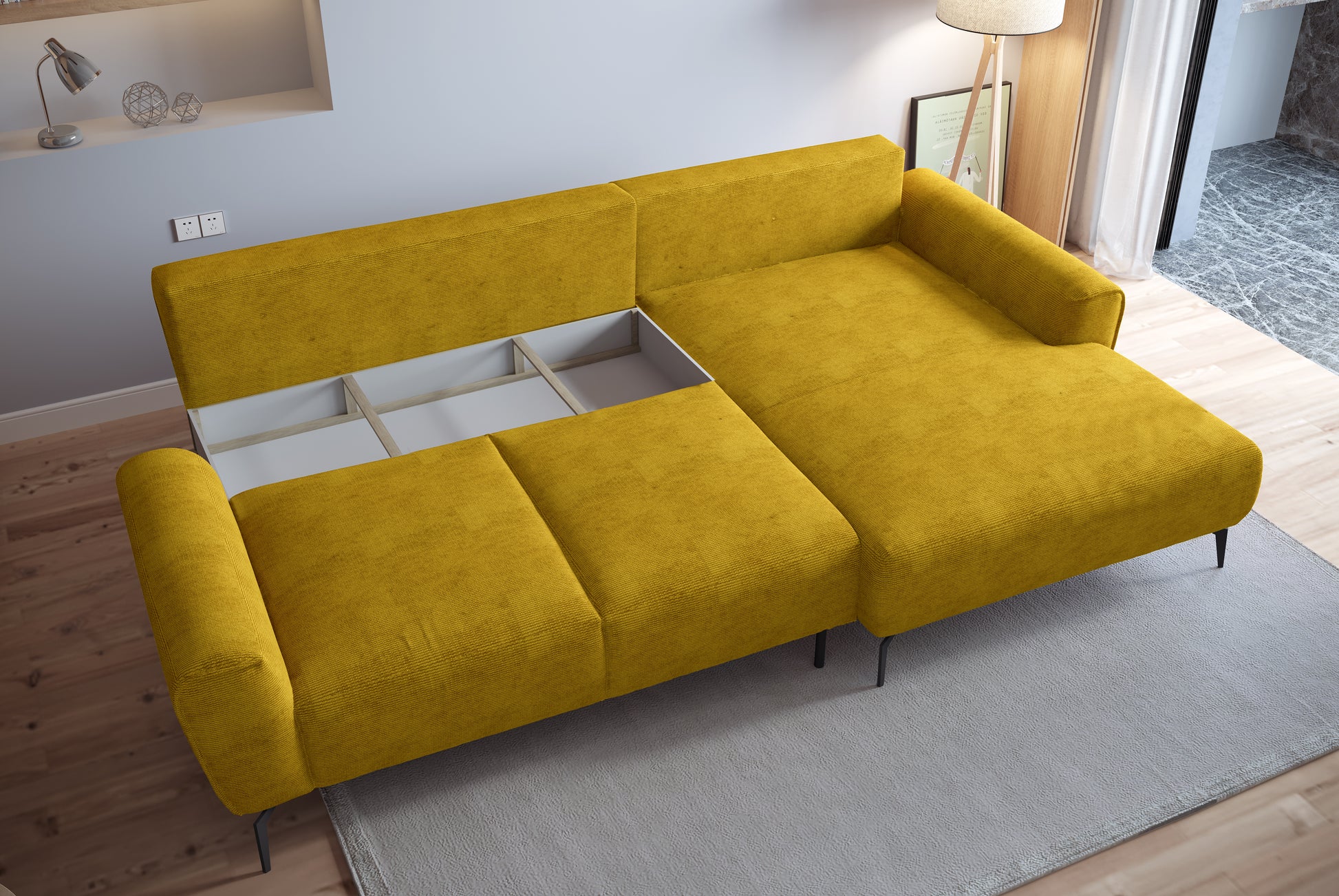 BALI S - tai kampinė sofa, kuri, nepaisant savo paprastos formos, puikiai tiks bet kokiame interjere. Suapvalinti šonai ir dekoratyvinės metalinės kojelės suteikia šiam modeliui modernią išvaizdą. Miegojimo funkcija ir patalynės dėžė - papildomi šio modelio privalumai.