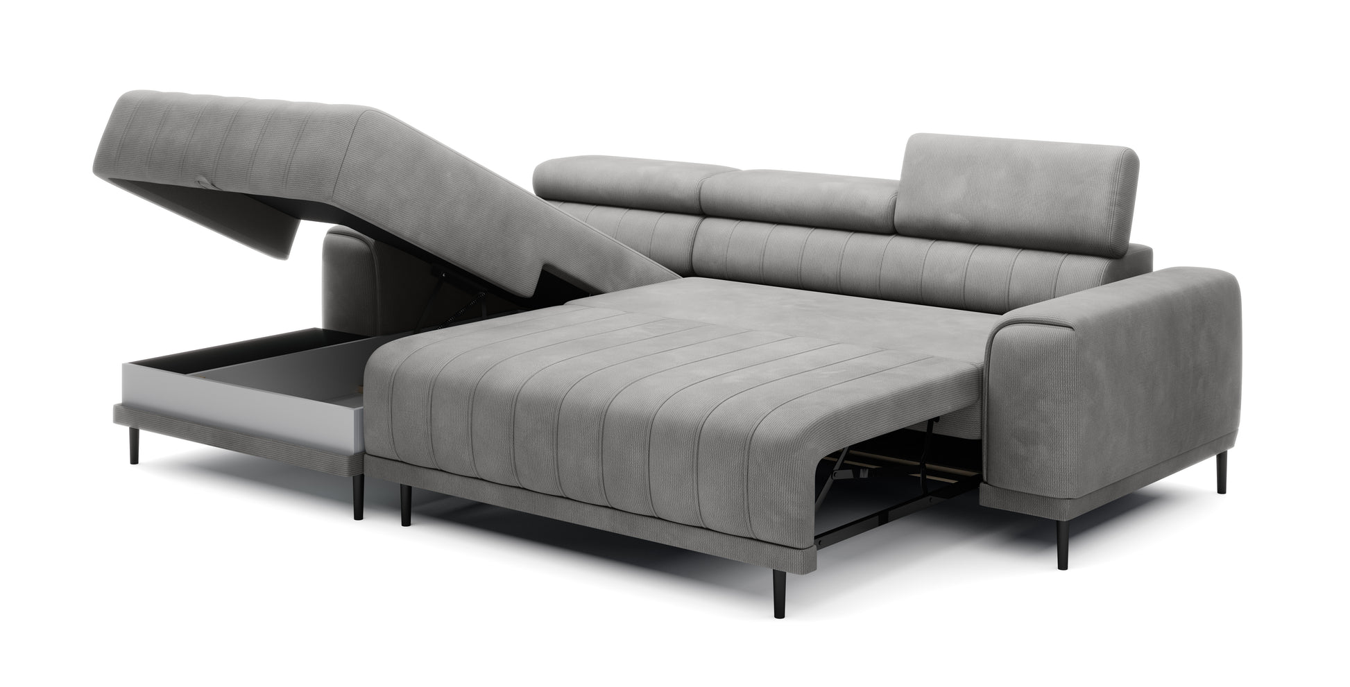 CALDO S – tai kampinė sofa, išsiskirianti vertikaliomis siūlėmis. Reguliuojami galvos atlošai leidžia likusią dalį pritaikyti prie individualių vartotojo poreikių. PUMA sulankstomos sistemos dėka šią kampinę sofą galima lengvai transformuoti į lovą. Paslėpta patalynės dėžė leidžia patogiai laikyti antklodes ir pagalves, ar kitus daiktus.