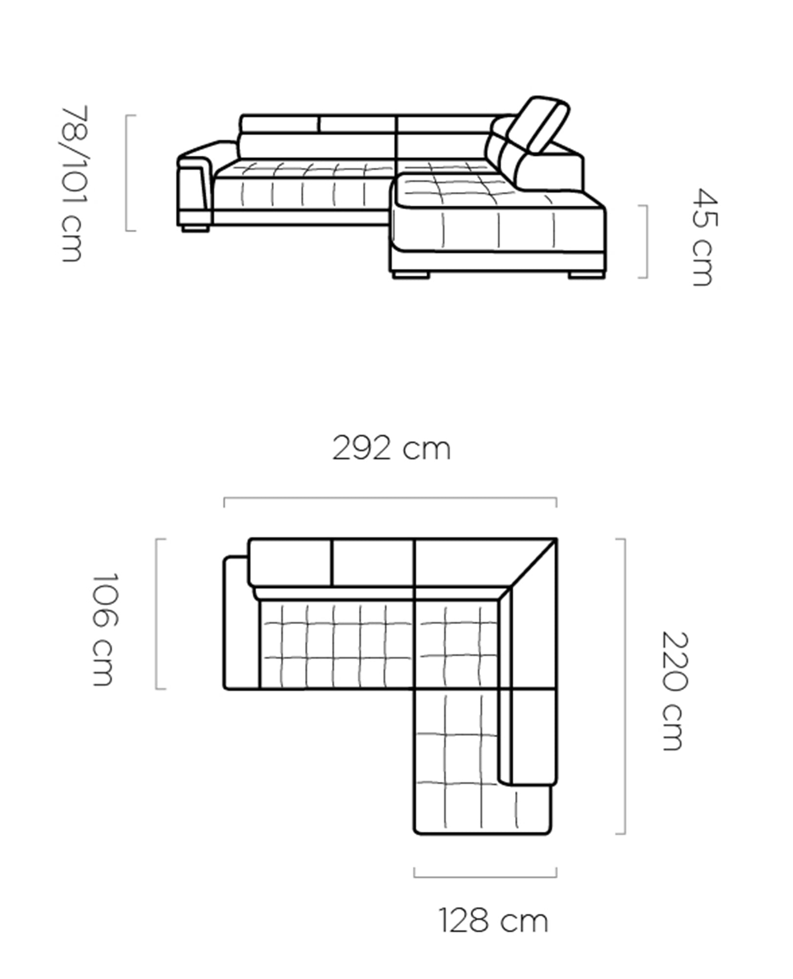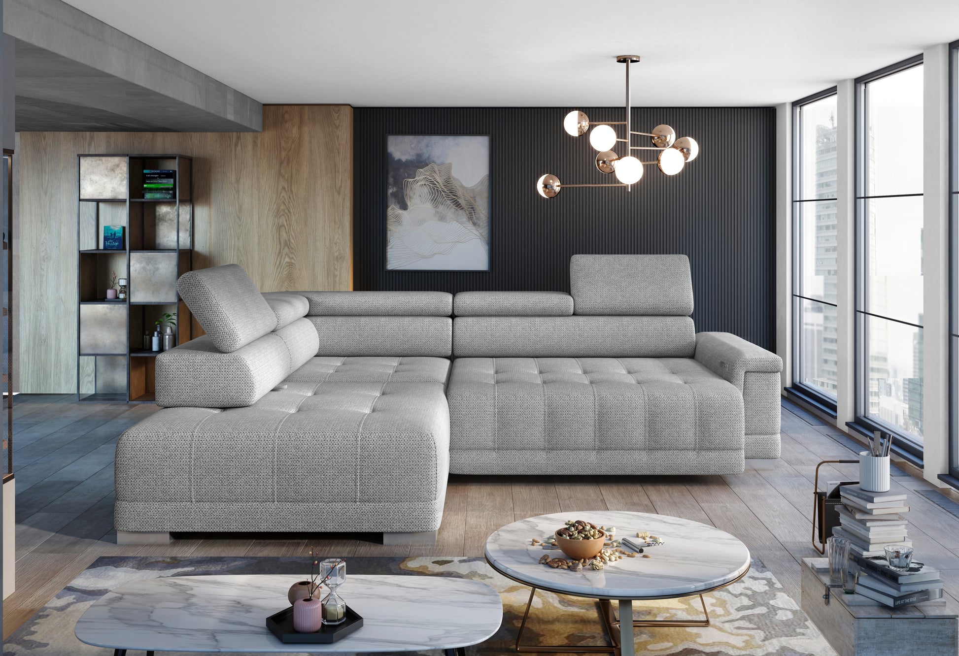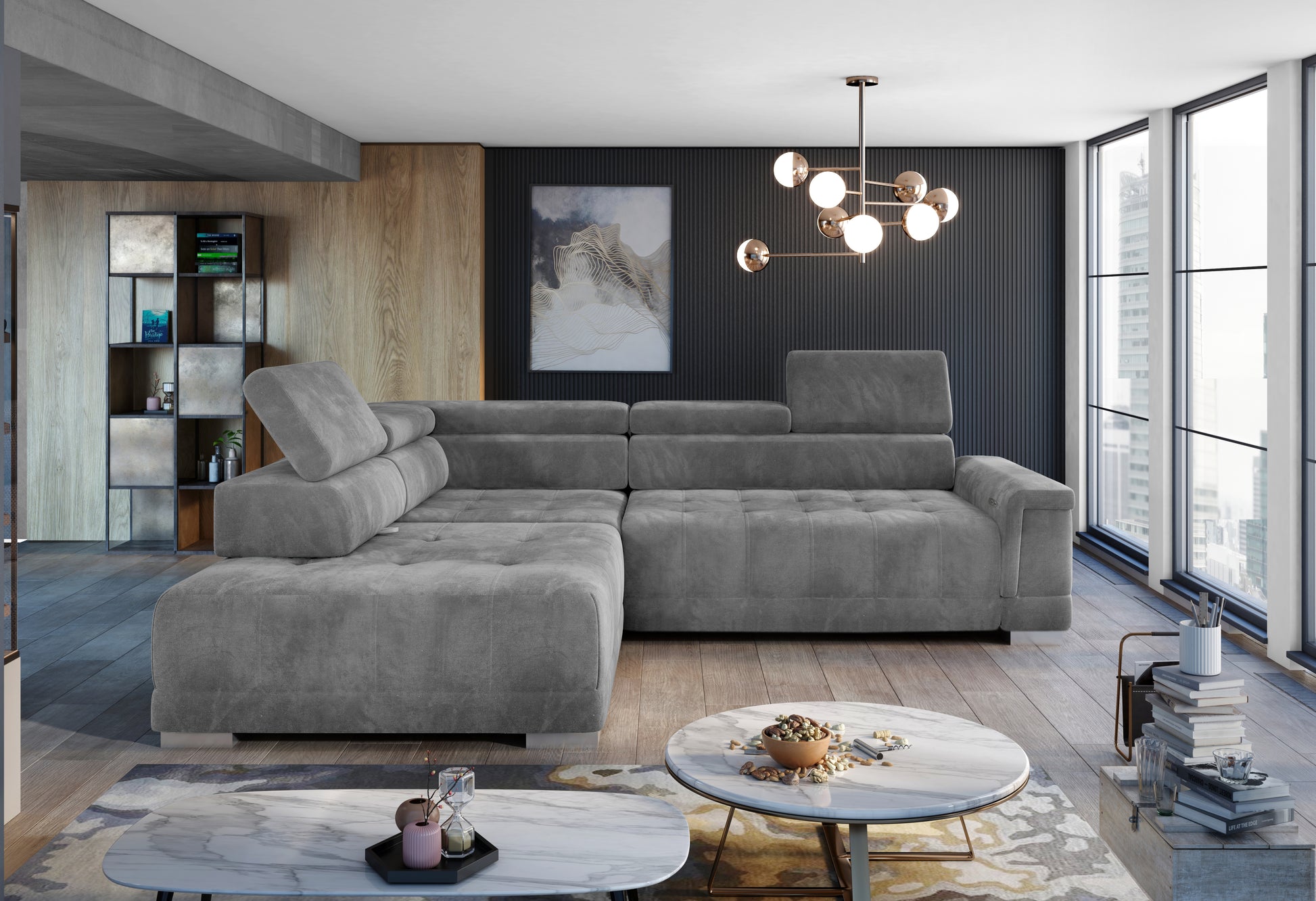 CAMPO L - nesenstanti forma ir funkcionalumas yra pagrindiniai šių baldų privalumai. Reguliuojami galvos atlošai, miego funkcija ir patalynės dėžė – idealus sprendimas ieškantiems išskirtinio komforto ir praktiškumo. Originalios metalinės kojos pabrėš modernų baldo stilių.