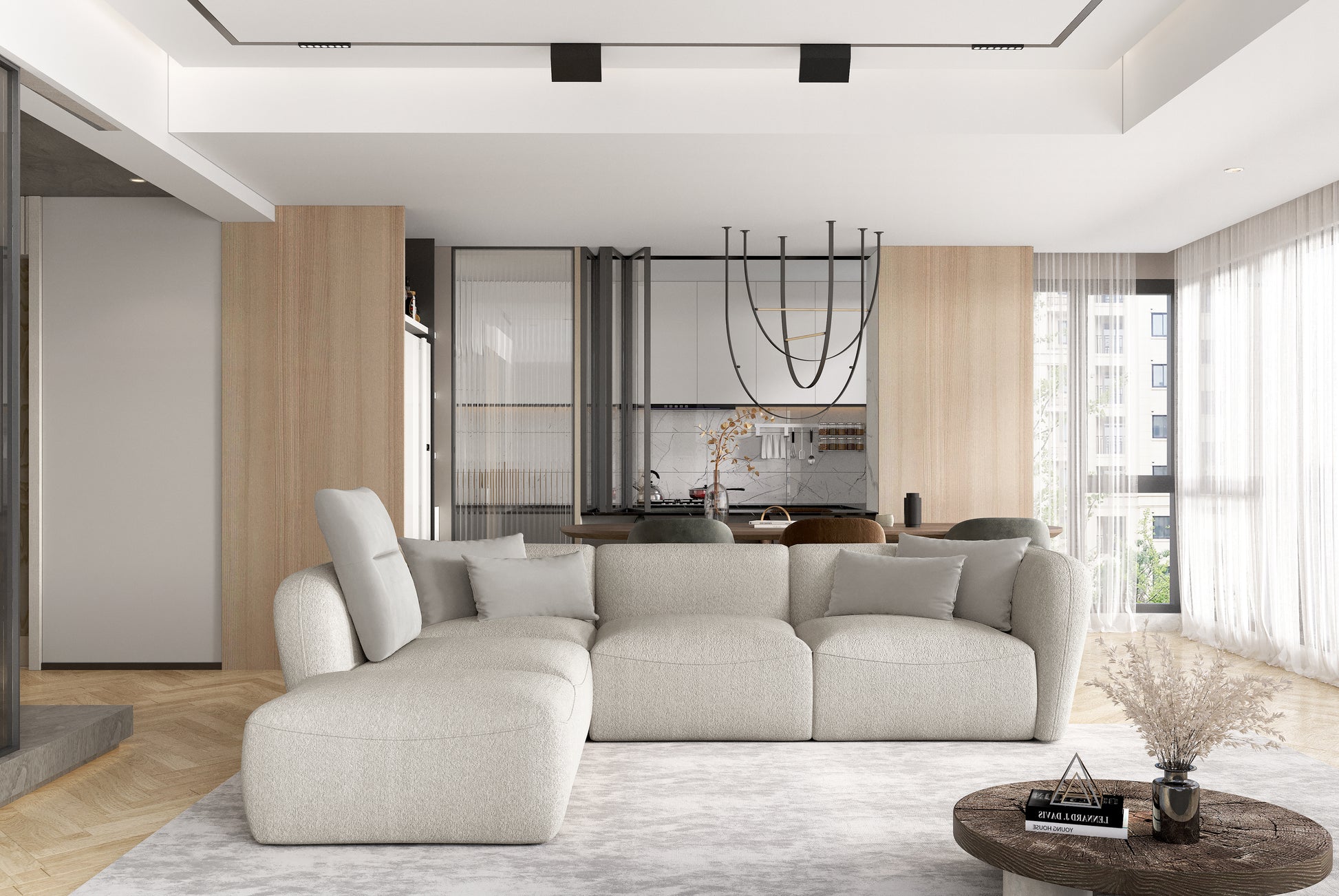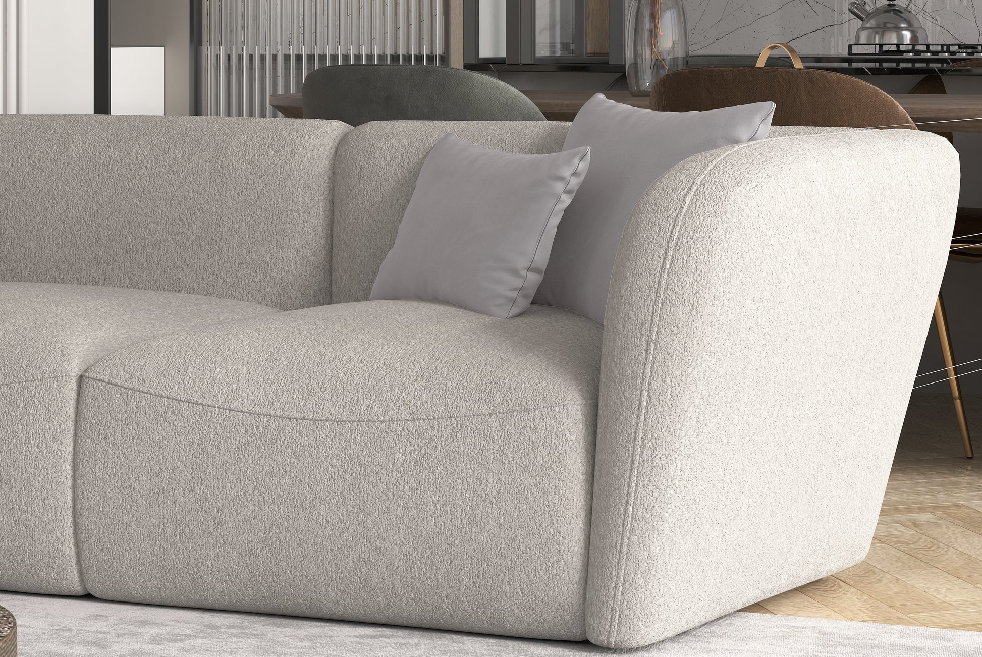 Modulinis apvalių formų komfortiškas, minkštas kampas. Kampo dalis galima statyti atskirai.