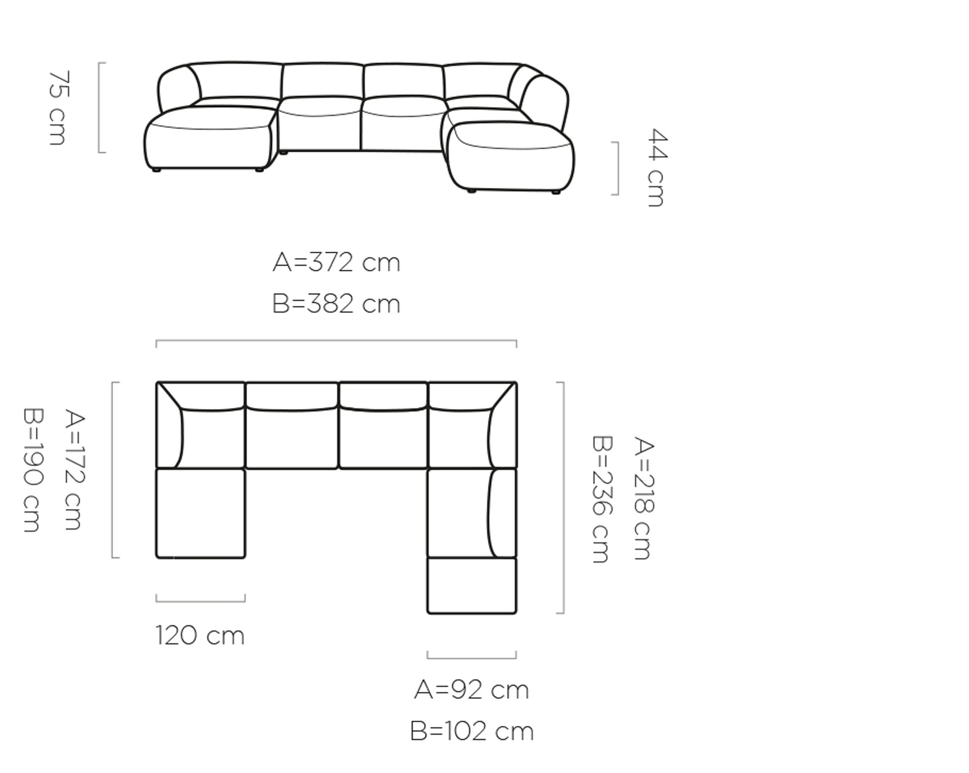 Modulinis apvalių formų komfortiškas, minkštas kampas. Kampo dalis galima statyti atskirai.