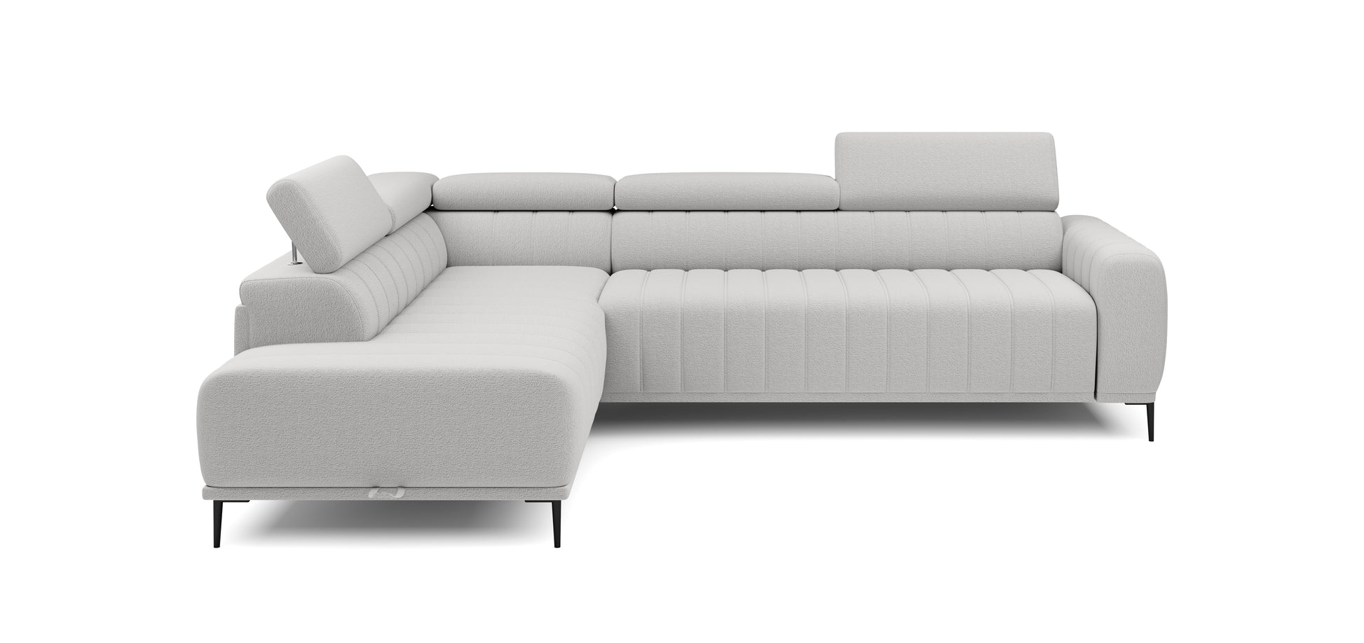 GANDI L – nepaprastai funkcionali, patogi ir stilinga kampinė sofa. Itališka sulankstoma sistema leidžia lengvai paversti ją lova, kurios miegamasis plotas gali būti dviejų dydžių: 120 x 200 cm. arba 140 x 200 cm. Patogi sėdynė ir atlošas su reguliuojama galvos atrama leidžia pritaikyti šį minkštą kampą pagal savo individualius poreikius. Metalinės kojos suteikia modernumo ir prabangos.