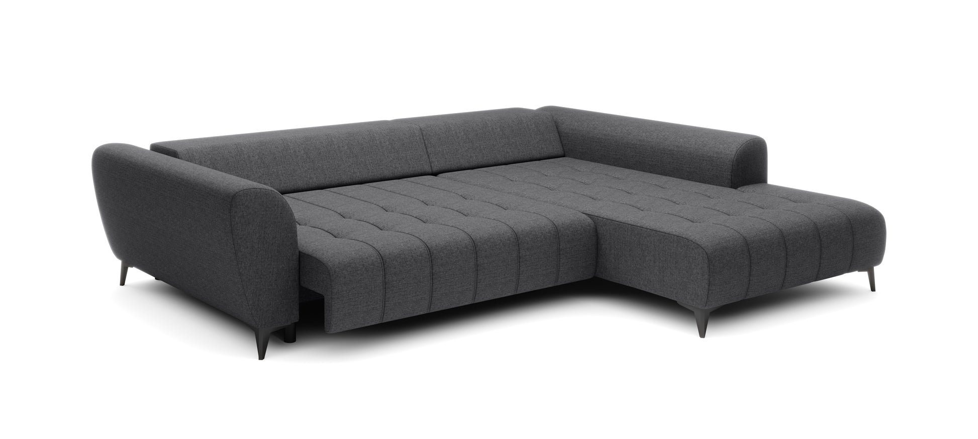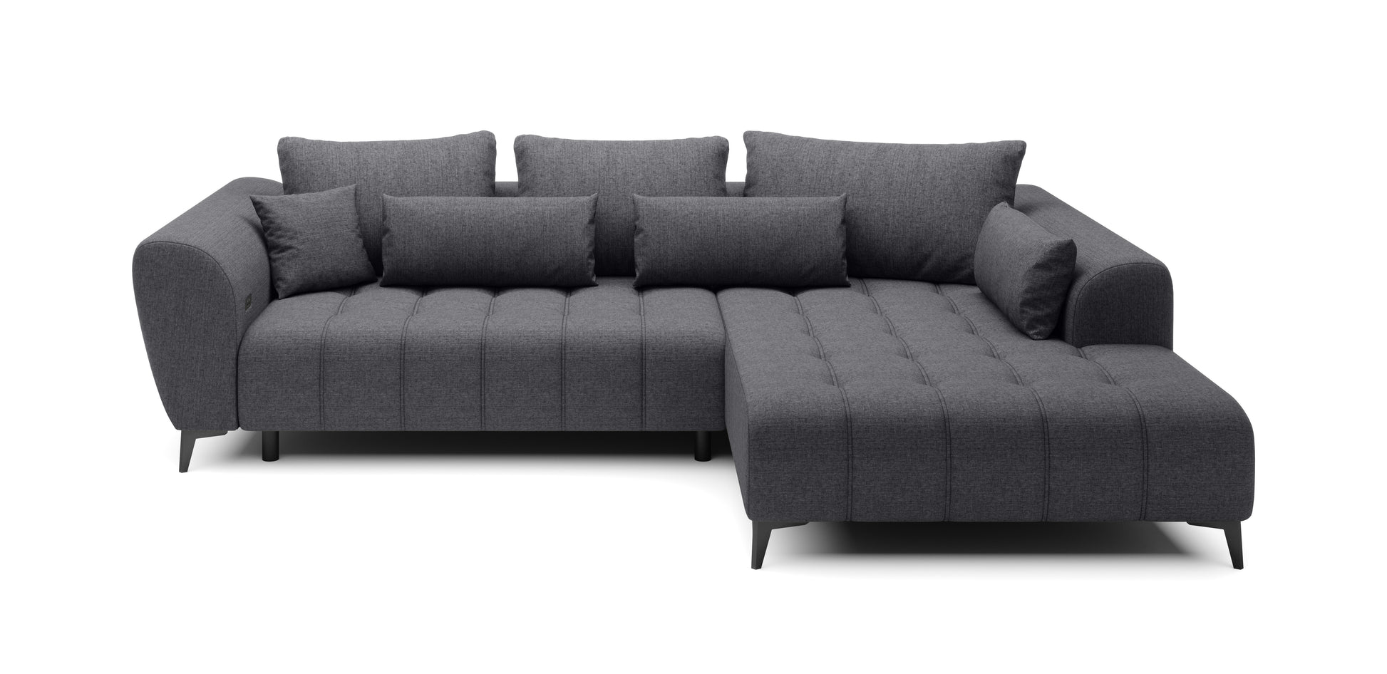GARAY - yra plati, moderni ir funkcionali kampinė sofa. Ji yra itin patogi ir turi elektra reguliuojamą sėdynės gylį, kuris leidžia vartotojui reguliuoti poilsio padėtį pagal savo individualius pageidavimus. Subtilios, juodo metalo kojos prideda žavesio.