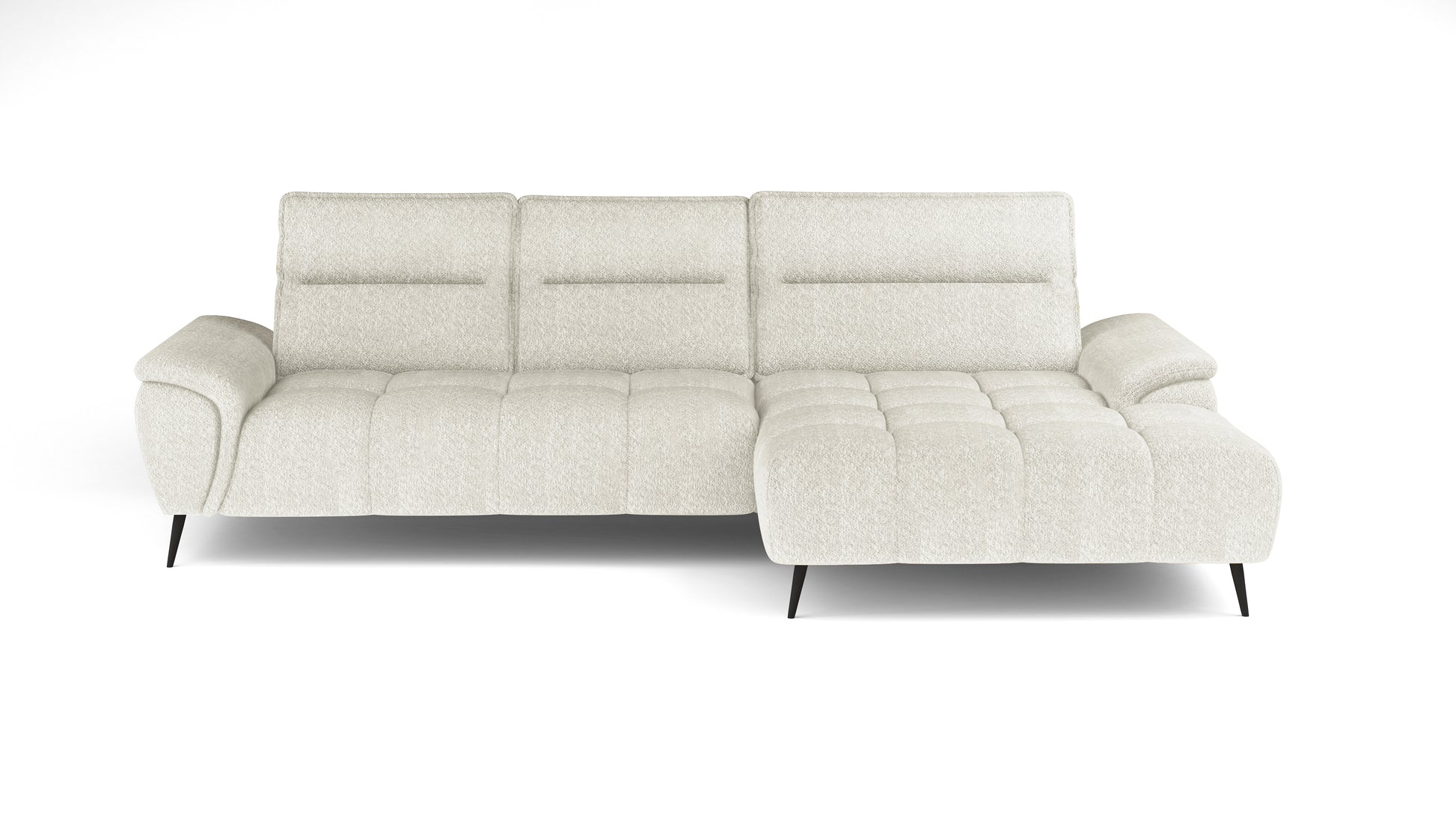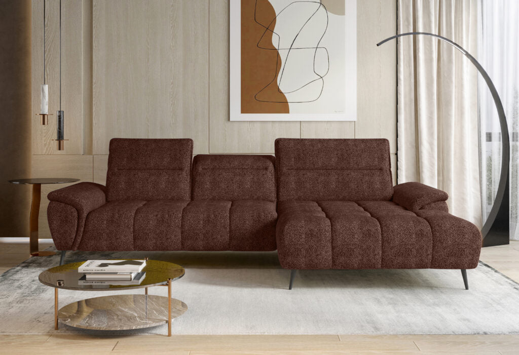 Šiame minkštame kampe yra papildomos funkcijos, kurios pagerina jų patogumą. Vienas iš jų yra elektrinis sėdimos dalies pailginimas, o reguliuojama galvos atrama ir stumdomi atlošai leidžia atsipalaiduojant užimti patogiausią kūno padėtį. Šios kolekcijos dizainas idealiai tinka moderniems ir minimalistiniams interjerams, kur baldai visada atrodo unikaliai ir intriguojančiai, nepaisant dydžio.