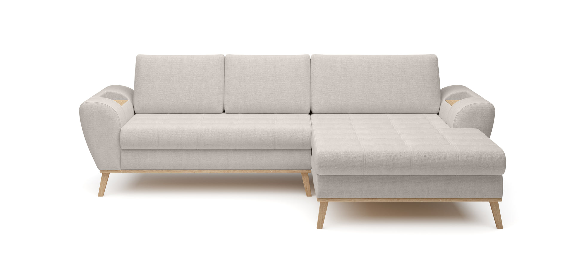 NUBO S - itin patogi kampinė sofa su miego funkcija ir lengvai naudojama automatine "DELFIN" išskleidimo sistema. Kampinėje sofoje yra didelė patalynės dėžė, kurioje galite laikyti papildomą patalynės komplektą. Mažos medinės lentynėlės kampinės sofos šonuose yra puikus sprendimas tiems, kurie mėgsta atsipalaiduoti su knyga ir puodeliu geros arbatos.