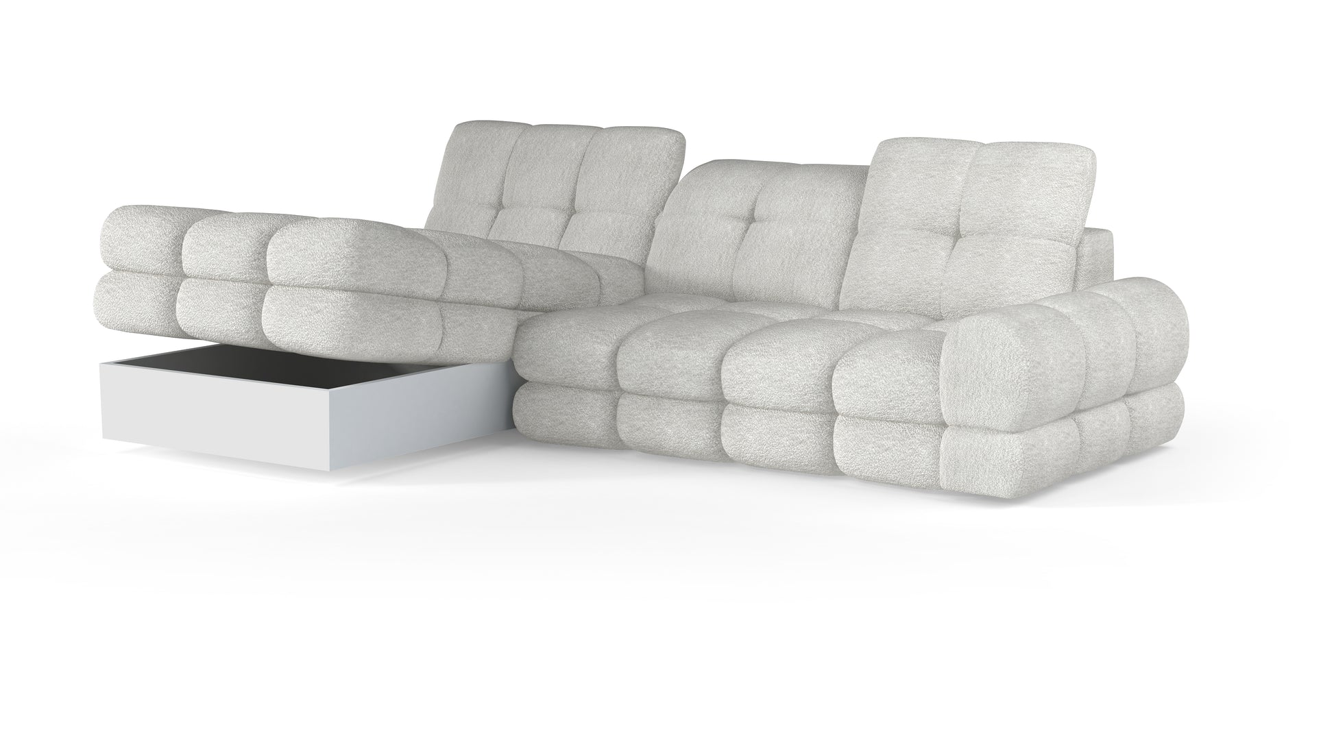 TOLLO S - kampinė sofa, sukurta pagal naujausias interjero dizaino tendencijas. Masyvi ir patogi sėdynė, paryškinta giliu susiuvimu, sukuria originalią ir neįprastą baldų išvaizdą. Reguliuojami galvos atlošai leidžia reguliuoti kampą, o tai pagerina naudojimo kokybę. Minkštajame kampe yra paslėptas patalynės dėžės skyrius, kuriame galima laikyti pagalves ar šiltą antklodę.