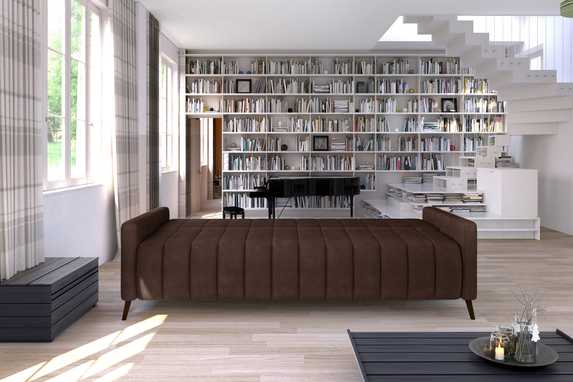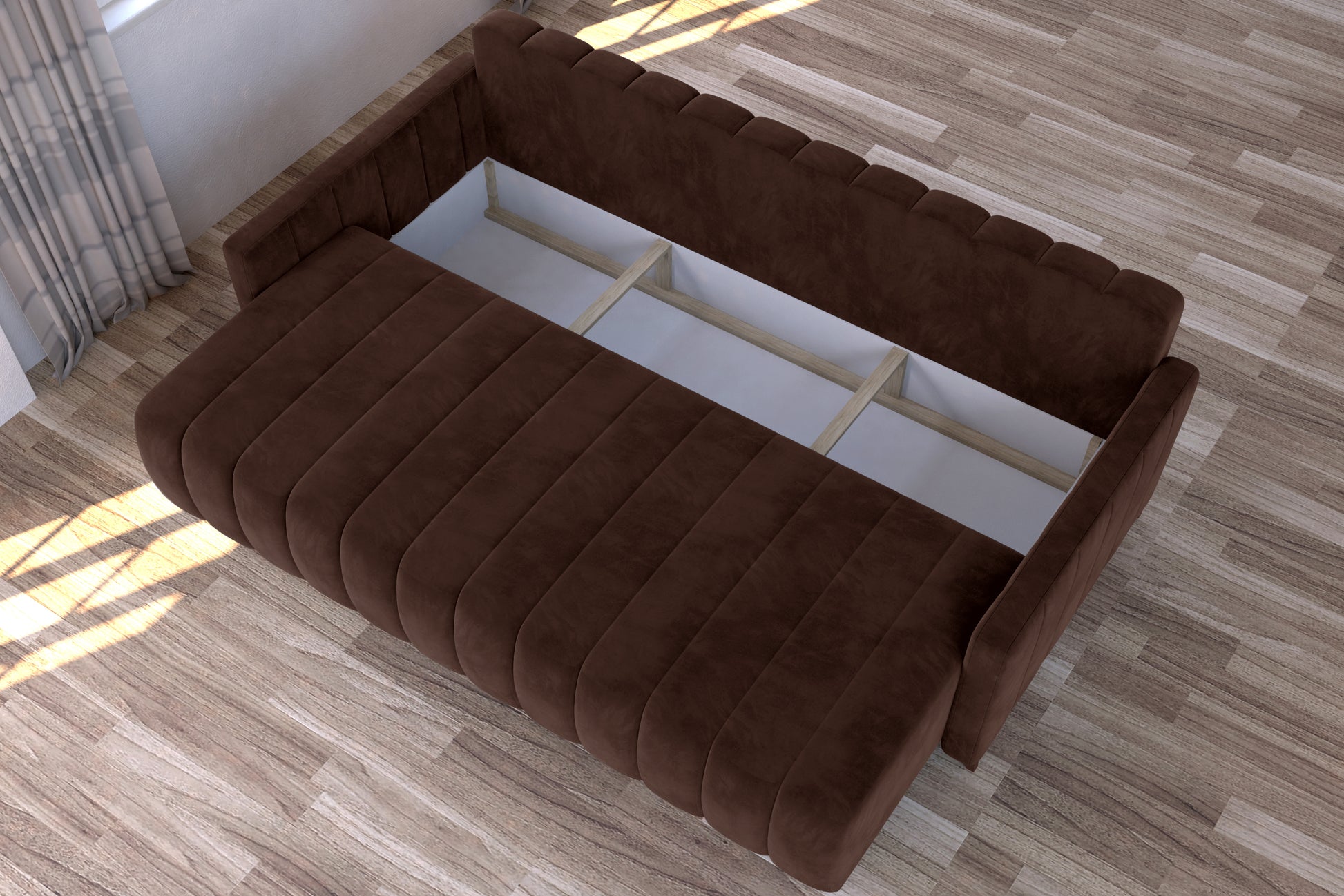 MOLLY skirta mažesnio dydžio kambariams, kuriuose reikia ne tik vietos atsipalaiduoti, bet ir patogios miegamosios vietos. Moderni, originaliai apdailinta sofa, pastatyta ant aukštų kojų, bus bet kokio interjero puošmena. Galimybė pasirinkti audinio faktūrą ir spalvą iš gausios raštų paletės leidžia pritaikyti jos stilių pagal individualų skonį.