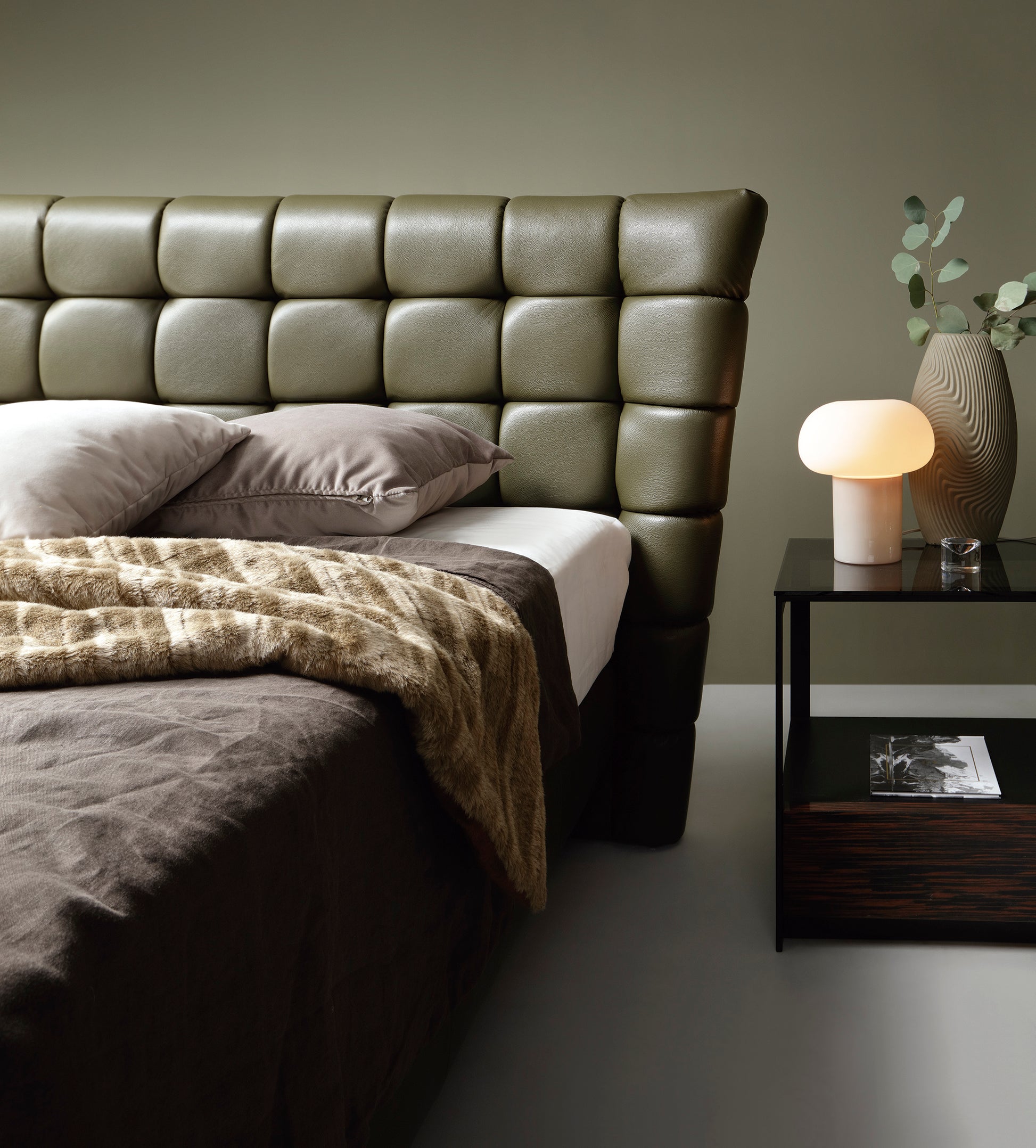 Šis modelis yra tikras perlas tarp lovų. Jis traukia akį originaliai susiutu galvūgaliu su daugybe dygsnių. Aukštos, lieknos kojos suteikia konstrukcijai lengvumo. Itin platus apmušalų audinių pasirinkimas leis pritaikyti lovą prie savo miegamojo dizaino.