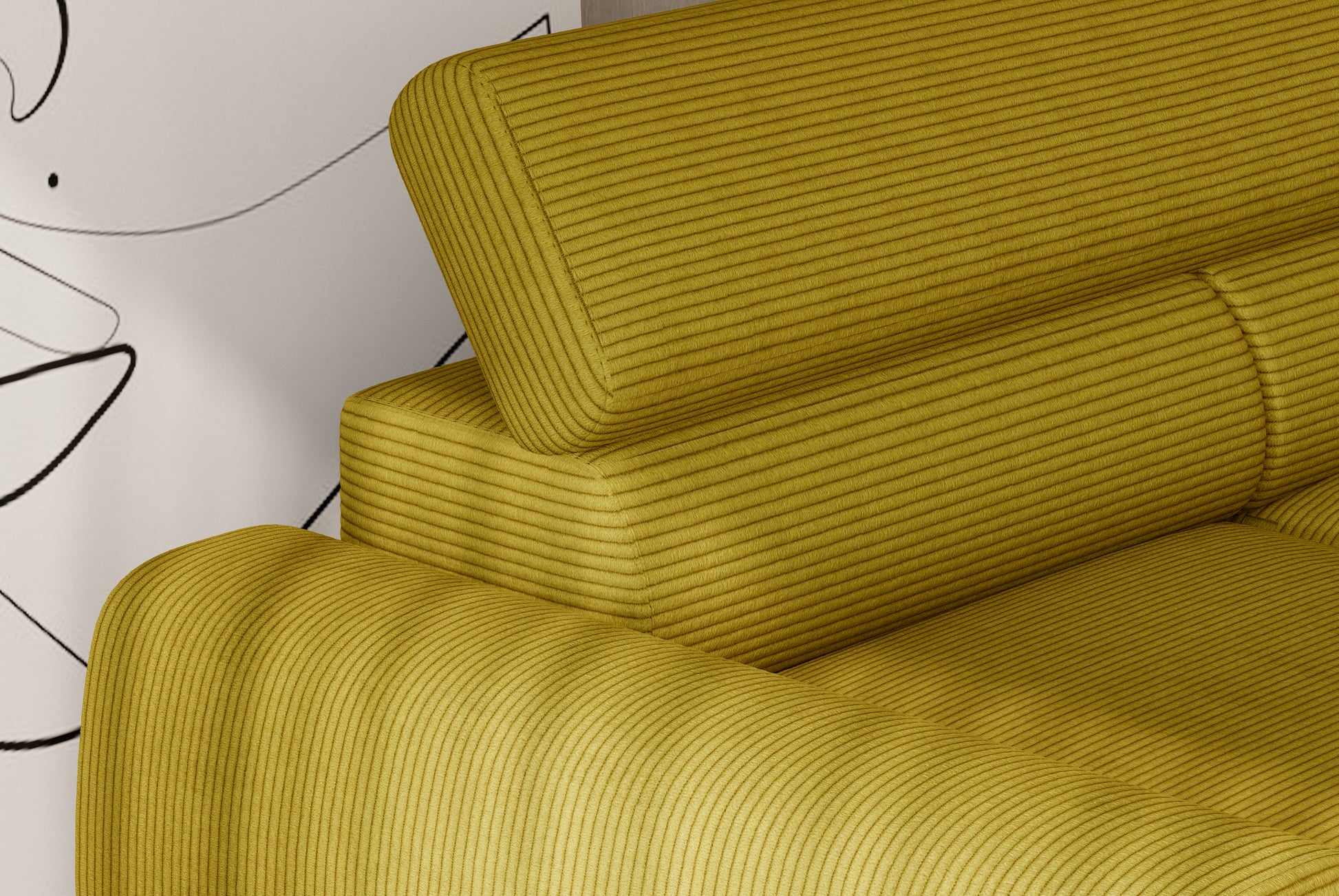 CALCIO S - modernus ir daugiafunkcinis minkšto kampo modelis, turintis 2 reguliuojamus judančius galvos atlošus. Tai leidžia visiškai prisitaikyti prie vartotojo poreikių, todėl atrasite idealiai jums tinkančią padėtį. Kampinėje sofoje yra miego funkcija ir patalynės dėžė, kurioje galite laikyti papildomą patalynės komplektą.