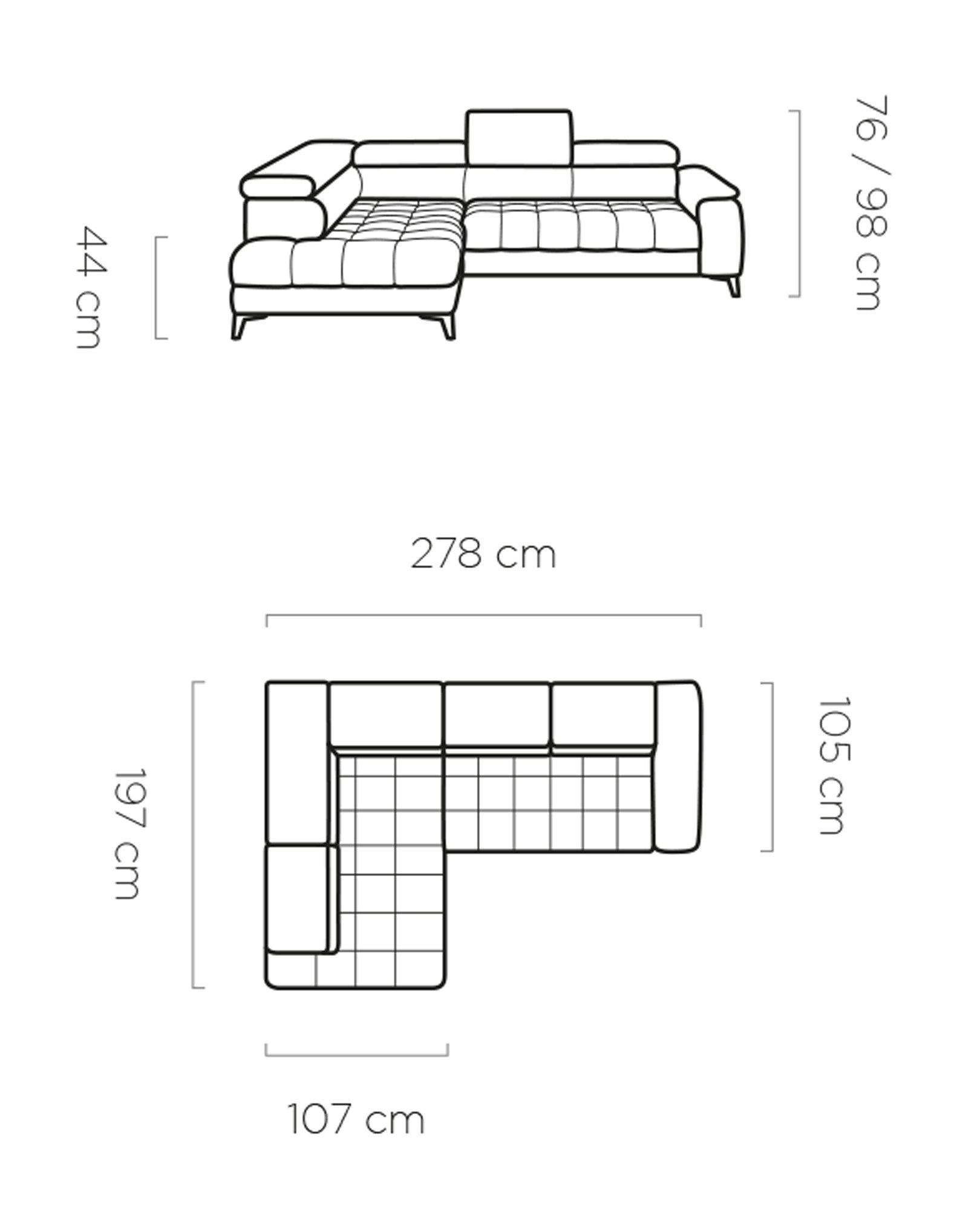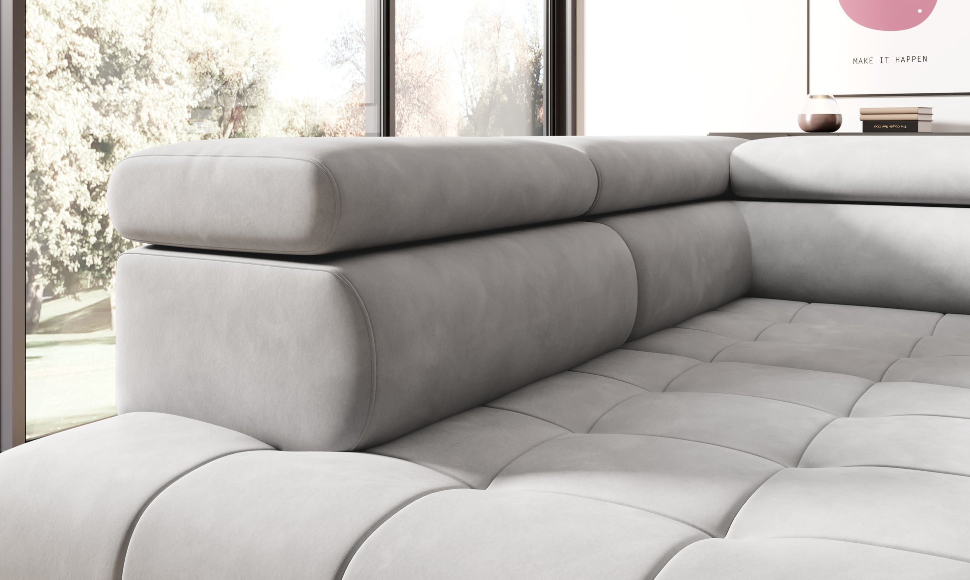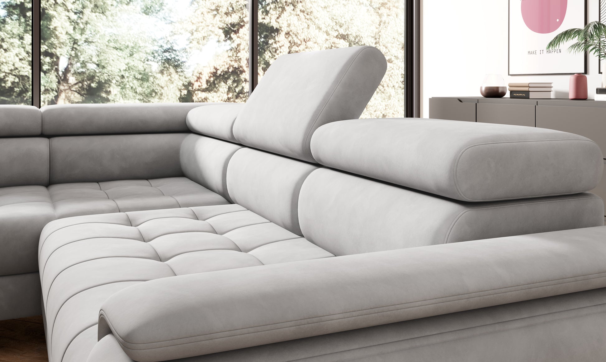 CHIVAS - patinks visiems, kurie vertina funkcionalumą ir gerą dizainą. Reguliuojami galvos atlošai ir motorizuotas sėdynių prailginimas daro šią kampinę sofą ypač patogia naudotojui.