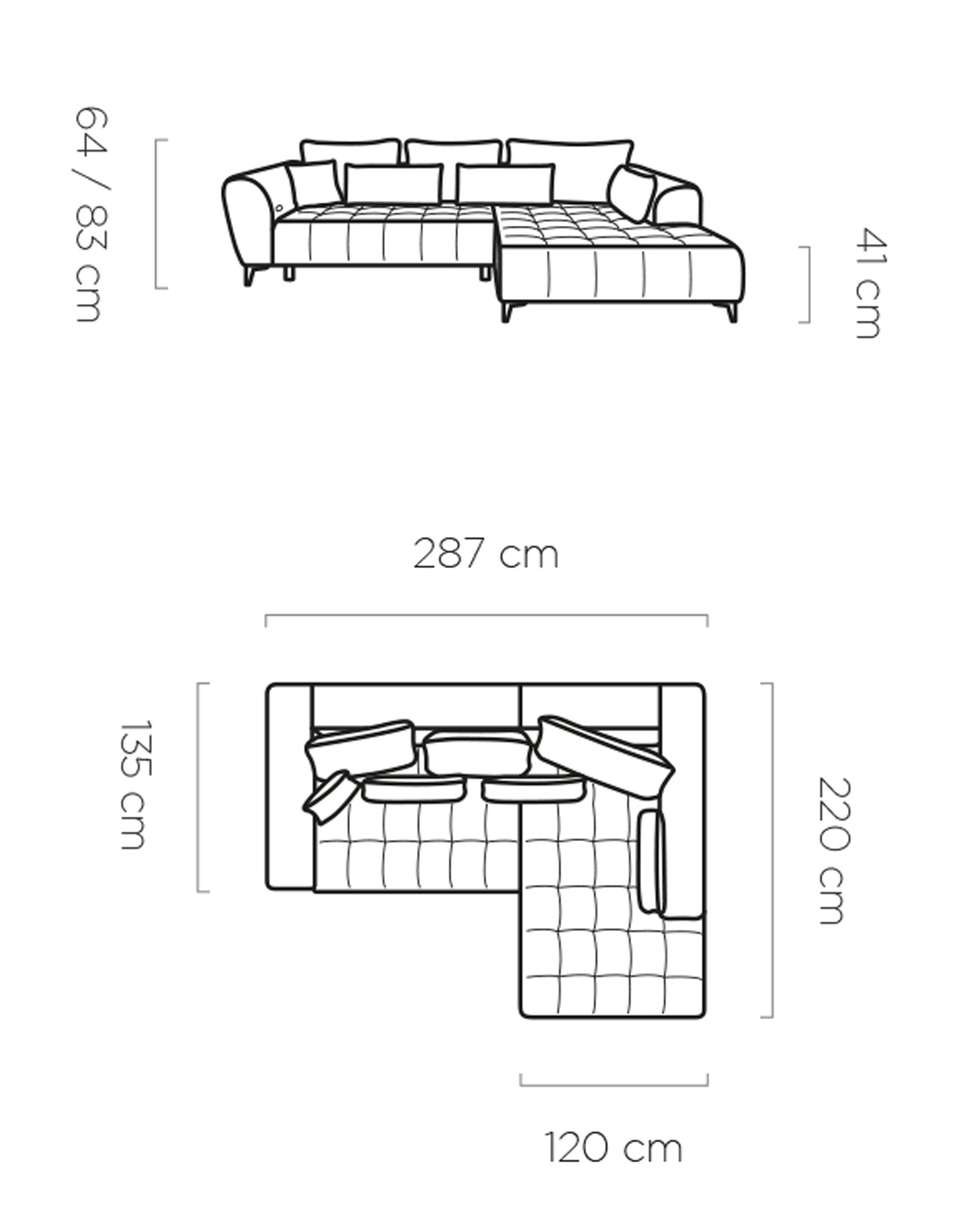 GARAY - yra plati, moderni ir funkcionali kampinė sofa. Ji yra itin patogi ir turi elektra reguliuojamą sėdynės gylį, kuris leidžia vartotojui reguliuoti poilsio padėtį pagal savo individualius pageidavimus. Subtilios, juodo metalo kojos prideda žavesio.