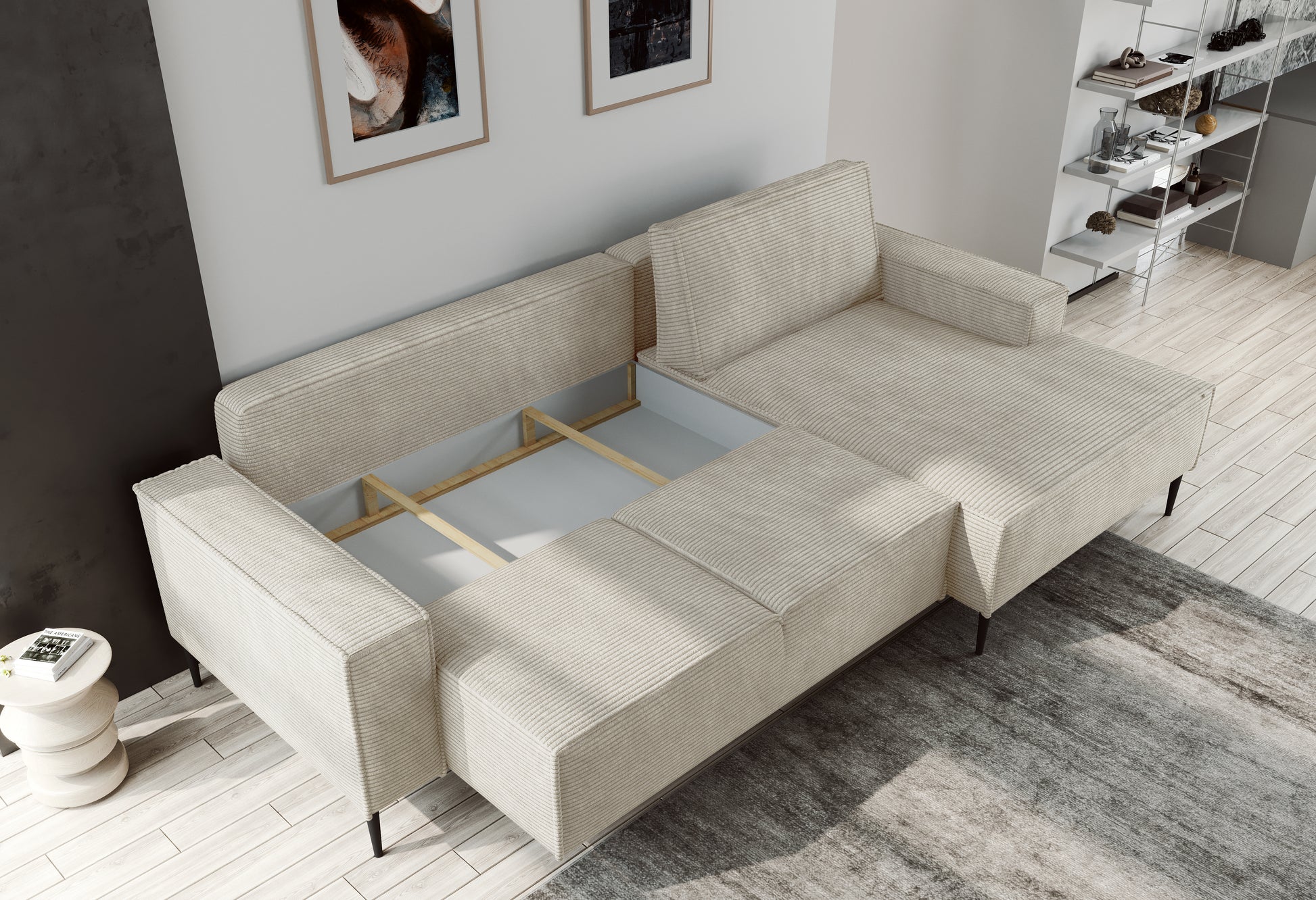 MATANO S - kampinė sofa skirta visiems tiems, kurie vertina modernų dizainą ir komfortą. Miego funkcija yra puikus sprendimas tiems, kurie ieško papildomos poilsio vietos. Minkštame kampe įmontuotoje daiktadėžėje gali tilpti papildoma patalynė ir šilta antklodė. Kampinė sofa dėl savo itin paprastos formos tinka bet kokiam interjerui.