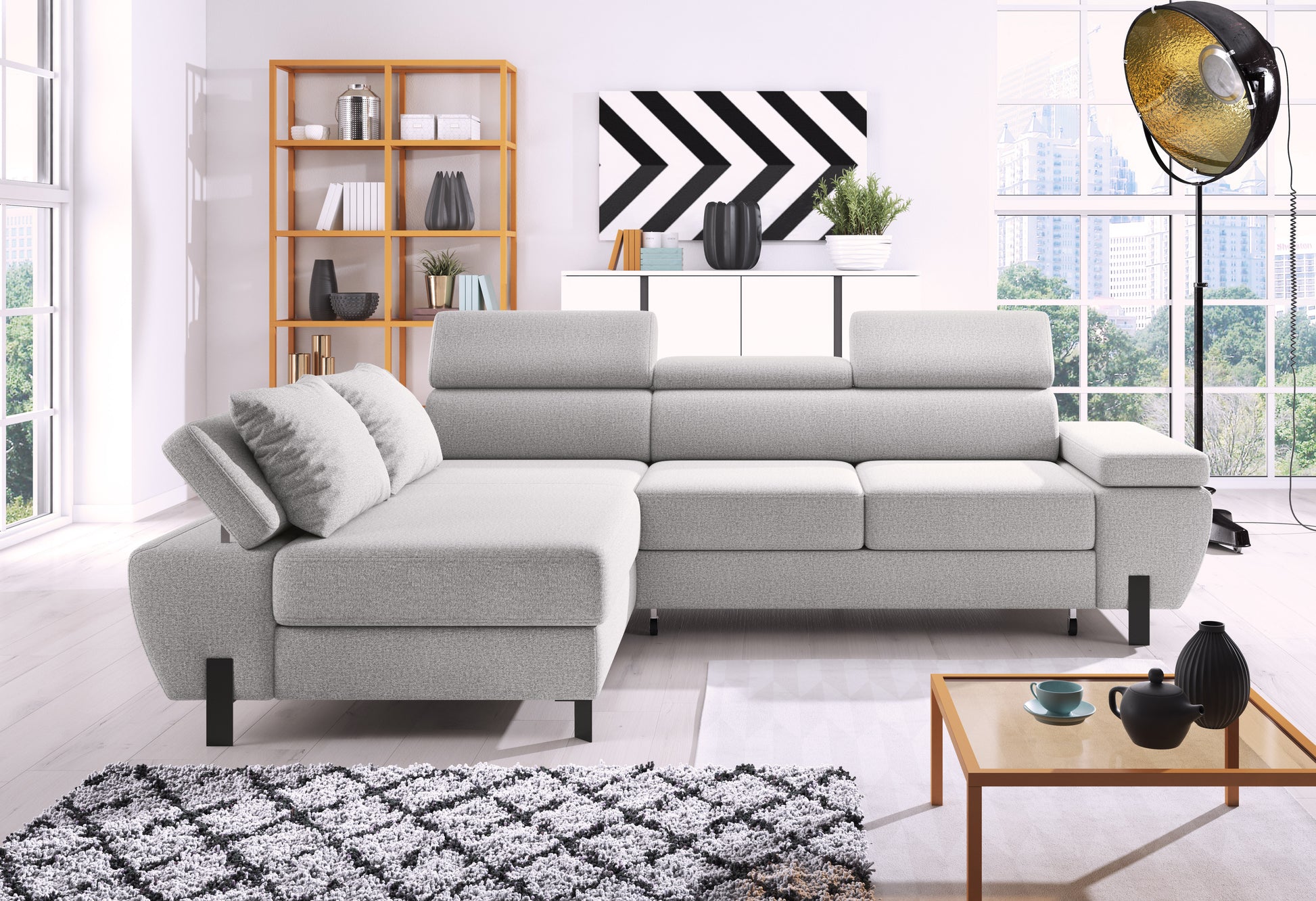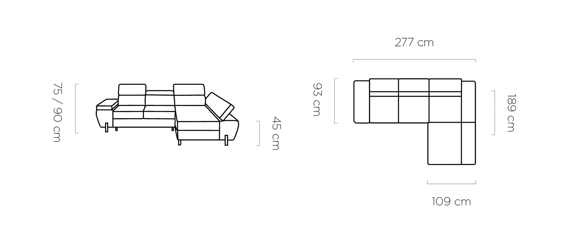 MOLINA S – visiems tiems, kurie vertina modernų dizainą, komfortą ir funkcionalumą. Originalios metalinės kojos pabrėžia unikalų baldų charakterį. Patogūs, reguliuojami galvos atlošai ir kilnojamas porankis užtikrins, kad kiekvienas šeimos narys galės atsipalaiduoti taip, kaip jam patinka. Miego funkcija yra sprendimas visiems tiems, kurie ieško papildomos vietos poilsiui. Baldų viduje paslėpta didelė patalų dėžė suteiks papildomos vietos patalų sandeliavimui.