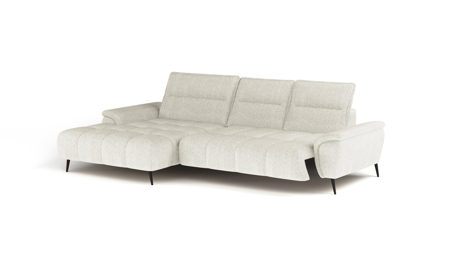 Šiame minkštame kampe yra papildomos funkcijos, kurios pagerina jų patogumą. Vienas iš jų yra elektrinis sėdimos dalies pailginimas, o reguliuojama galvos atrama ir stumdomi atlošai leidžia atsipalaiduojant užimti patogiausią kūno padėtį. Šios kolekcijos dizainas idealiai tinka moderniems ir minimalistiniams interjerams, kur baldai visada atrodo unikaliai ir intriguojančiai, nepaisant dydžio.