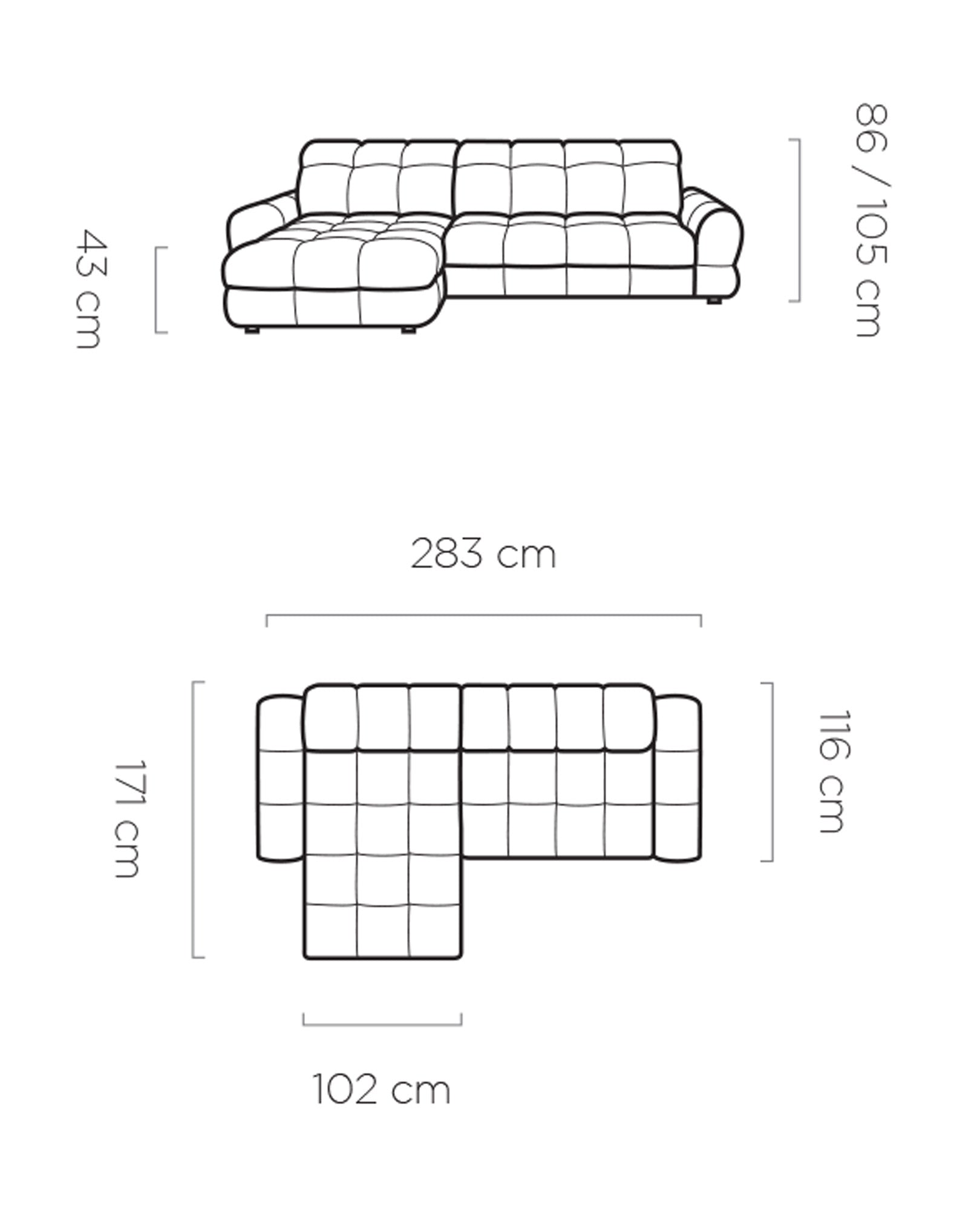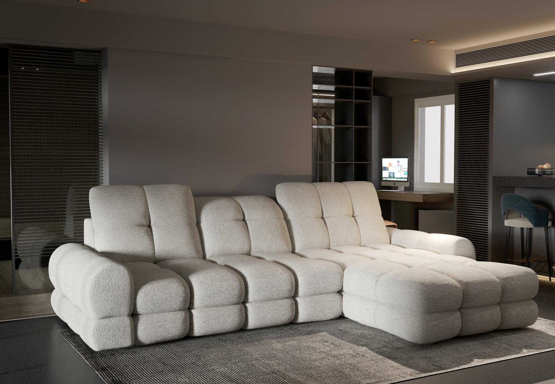 TOLLO S - kampinė sofa, sukurta pagal naujausias interjero dizaino tendencijas. Masyvi ir patogi sėdynė, paryškinta giliu susiuvimu, sukuria originalią ir neįprastą baldų išvaizdą. Reguliuojami galvos atlošai leidžia reguliuoti kampą, o tai pagerina naudojimo kokybę. Minkštajame kampe yra paslėptas patalynės dėžės skyrius, kuriame galima laikyti pagalves ar šiltą antklodę.