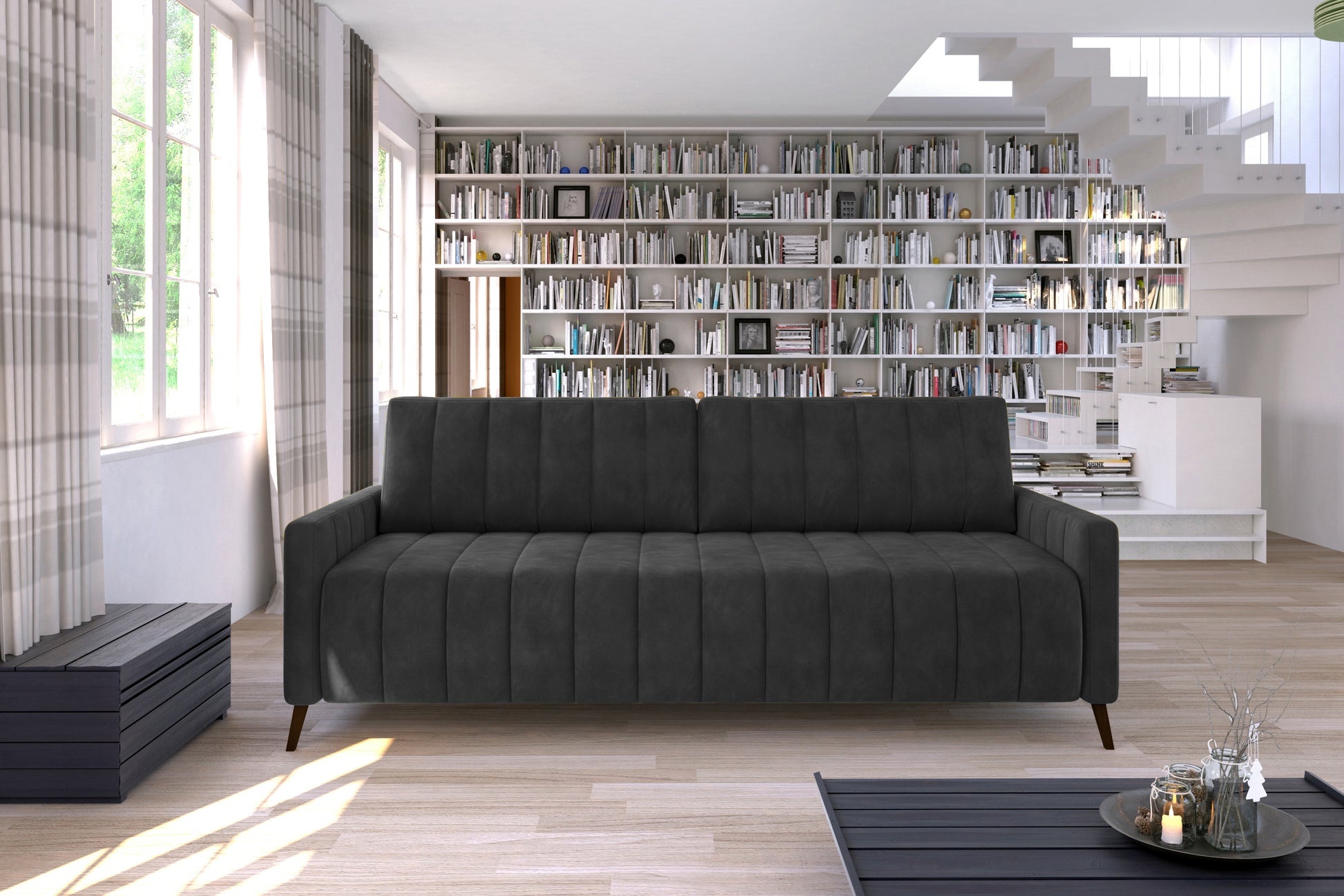MOLLY skirta mažesnio dydžio kambariams, kuriuose reikia ne tik vietos atsipalaiduoti, bet ir patogios miegamosios vietos. Moderni, originaliai apdailinta sofa, pastatyta ant aukštų kojų, bus bet kokio interjero puošmena. Galimybė pasirinkti audinio faktūrą ir spalvą iš gausios raštų paletės leidžia pritaikyti jos stilių pagal individualų skonį.